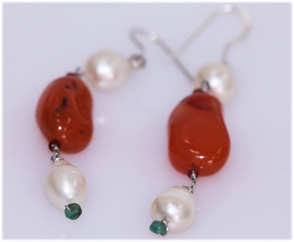 NATURAL 45.75 CTW EMERALD/SUSUNITE/PEARL EARRING .925 S **|**|** NATURAL 45.75 CTW EMERALD/SUSUNITE/PEARL EARRING .925 STERLING SILVER ; MSRP: $150