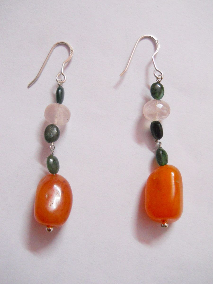 NATURAL 46.20 CTW EMERALD, SUSUNITE, ROSEQUARTZ EARRING **|**|** NATURAL 46.20 CTW EMERALD, SUSUNITE, ROSEQUARTZ EARRING .925 STERLING SILVER ; MSRP: $150