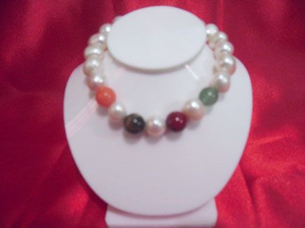 NATURAL 50.00 CTW FRESHWATER WHITE PEARL & PRECIOUS STO **|**|** NATURAL 50.00 CTW FRESHWATER WHITE PEARL & PRECIOUS STONES ELASTIC BRACELET ; MSRP: $240
