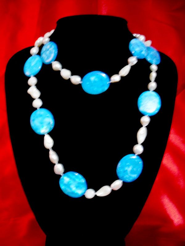 NATURAL 625 CTW KISHI WHITE PEARLS WITH BLUE CAPIZ **|**|** NATURAL 625 CTW KISHI WHITE PEARLS WITH BLUE CAPIZ; MAINSTONE PEARLS; SIZE 35in; TOTAL STRANDS 1; TOTAL WEIGHT 625 CTW ; MSRP: $150