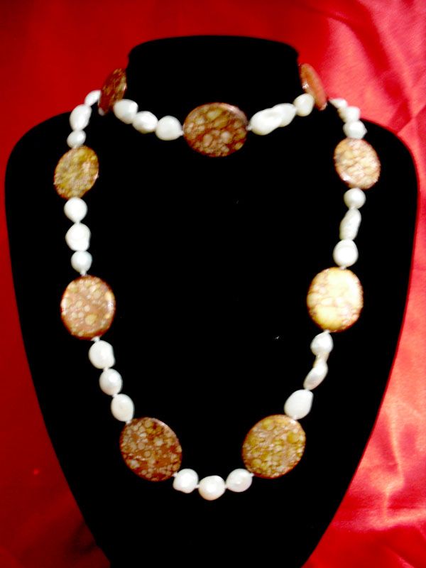 NATURAL 625 CTW KISHI WHITE PEARLS WITH BROWN CAPIZ **|**|** NATURAL 625 CTW KISHI WHITE PEARLS WITH BROWN CAPIZ; MAINSTONE PEARLS; SIZE 35in; TOTAL STRANDS 1; TOTAL WEIGHT 625 CTW ; MSRP: $150