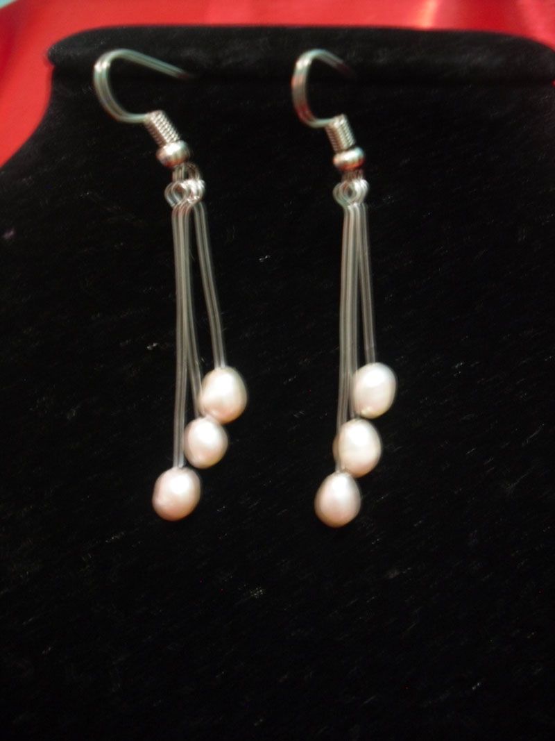 NATURAL 7.00 CTW 3-TEARDROPS PEACH PEARL DANGLING EARRI **|**|** NATURAL 7.00 CTW 3-TEARDROPS PEACH PEARL DANGLING EARRINGS ; MSRP: $240