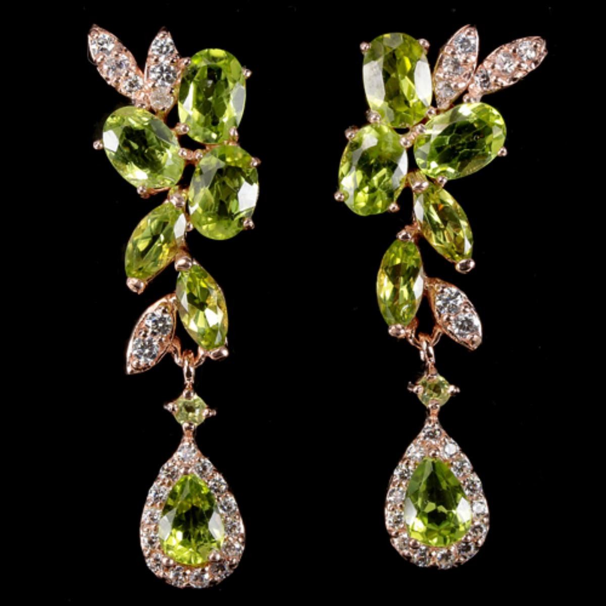NATURAL APPLE GREEN PERIDOT & WHITE CZ 925 SILVER EARRING 14K PINK GOLD COATING; STONE DIMENSION7 X 5 MM. , 7 X 3.5 MM. & 2.5 MM.ITEM WEIGHT8.7 GRAMCOLORAPPLE GREENCLARITYIF & VVSLUSTERDAZZLINGTREATMENTUNHEATEDORIGIN OF STONEASIAHARDNESS6.5;FACE OF EARRING 41 X 14 MM. WHITE CUBIC ZIRCONIA 2 MM. , 1.7 MM. & 1.5 MM