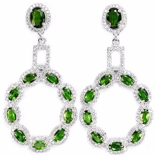 NATURAL GREEN CHROME DIOPSIDE WHITE CZ 925 SILVER EARRING 14K WHITE GOLD COATING; STONE SHAPE OVAL STONE DIMENSION 7 X 5 MM. , 5 X 3 MM. ITEM WEIGHT 11.8 GRAM COLOR GREEN CLARITY VVS TO VS LUSTER RAVISHING TREATMENT NATURAL UNHEATED ORIGIN OF STONE RUSSIA HARDNESS 5 - 6 OTHER FACE OF EARRING 50 X 24 MM. WHITE CUBIC ZIRCONIA 1 MM.
