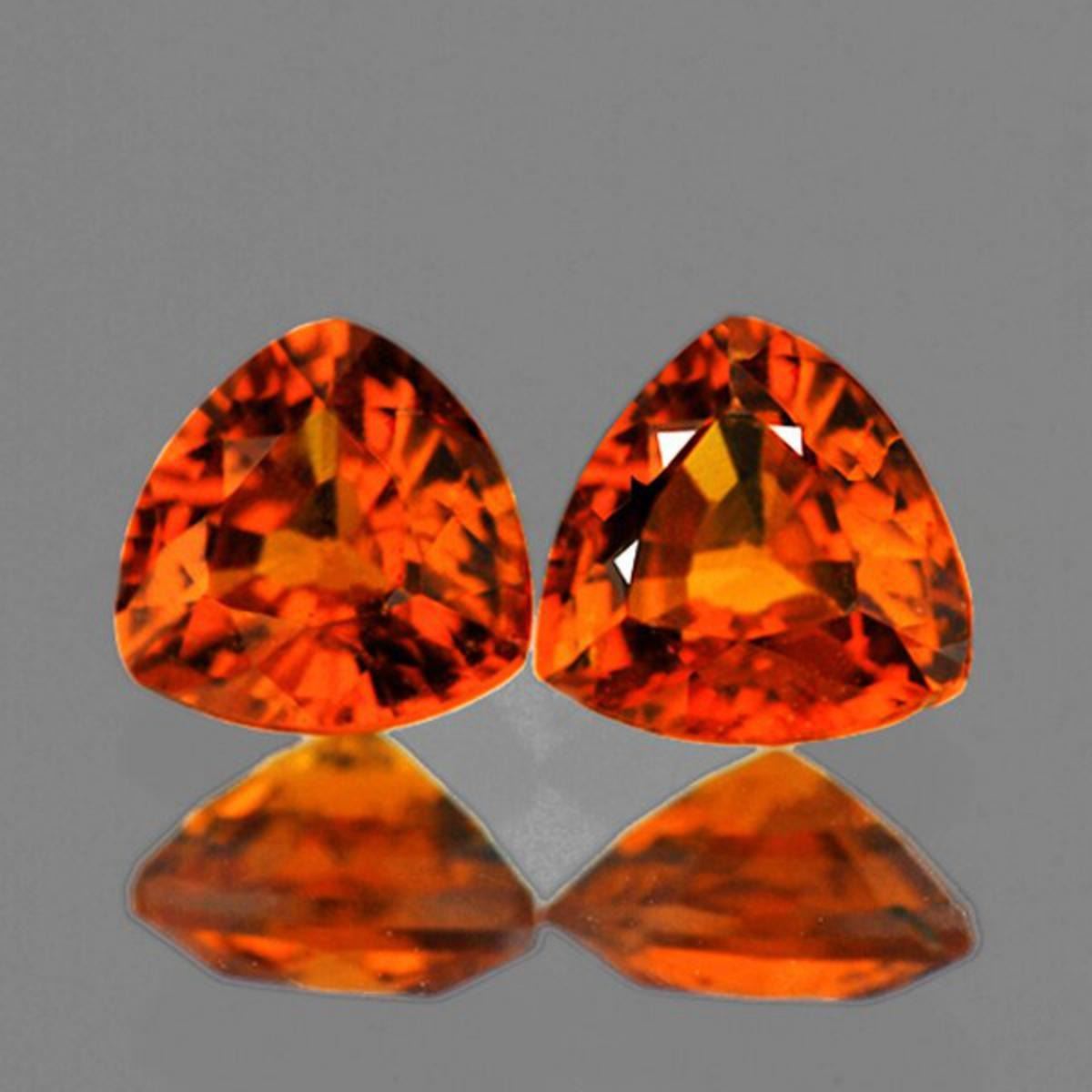 Natural Sapphire (Earthly Mined)SIZE ( L x W x D ) : 4.00 mm COLOR : Orange AAA+ ColorSHAPE : TrillionQUANTITY : 2 piecesLUSTER : ExcellentCLARITY : Flawless-VVS HARDNESS : 9ORIGIN : Songea TREATMENT : Heated
