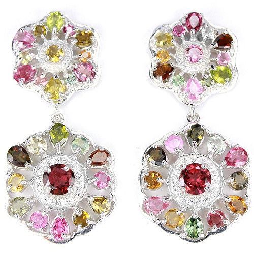 NATURAL AAA MULTI COLOR TOURMALINE  CZ 925 SILVER EARRING14K WHITE GOLD COATING; STONE SHAPE PEAR  ROUND PORTUGUESE CUT STONE DIMENSION 4 X 3 MM. , 4.5 MM. , 3 MM. , 2 MM. ITEM WEIGHT 9.45 GRAM COLOR MULTI COLOR CLARITY VVS, VS  SI LUSTER DAZZLING TREATMENT NATURAL UNHEATED ORIGIN OF STONE AFRICA HARDNESS 7.5 ; FACE OF EARRING 39 X 19 MM. WHITE CUBIC ZIRCONIA