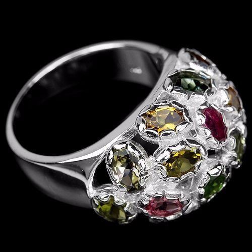 NATURAL AAA MULTI COLOR TOURMALINE OVAL 925 SILVER RING 14K WHITE GOLD COATING; RING SIZE - 8.50 ( can be resized ) ITEM QUANTITY -1; STONE SHAPE -OVAL PORTUGUESE CUT; STONE DIMENSION -5 X 4 MM. , 5 X 3 MM. , 3.5 MM.; ITEM WEIGHT -10.3 GRAM; COLOR -MULTI COLOR; CLARITY -VVS, VS SI; TREATMENT -NATURAL UNHEATED; ORIGIN OF STONE -AFRICA; HARDNESS -7.5; FACE OF RING 23 X 16 MM.