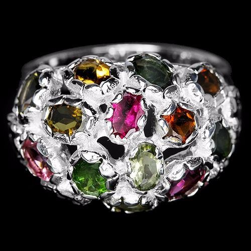 NATURAL AAA MULTI COLOR TOURMALINE OVAL 925 SILVER RING 14K WHITE GOLD COATING; RING SIZE - 8.50 ( can be resized ) ITEM QUANTITY -1; STONE SHAPE -OVAL PORTUGUESE CUT; STONE DIMENSION -5 X 4 MM. , 5 X 3 MM. , 3.5 MM.; ITEM WEIGHT -10.3 GRAM; COLOR -MULTI COLOR; CLARITY -VVS, VS SI; TREATMENT -NATURAL UNHEATED; ORIGIN OF STONE -AFRICA; HARDNESS -7.5; FACE OF RING 23 X 16 MM.