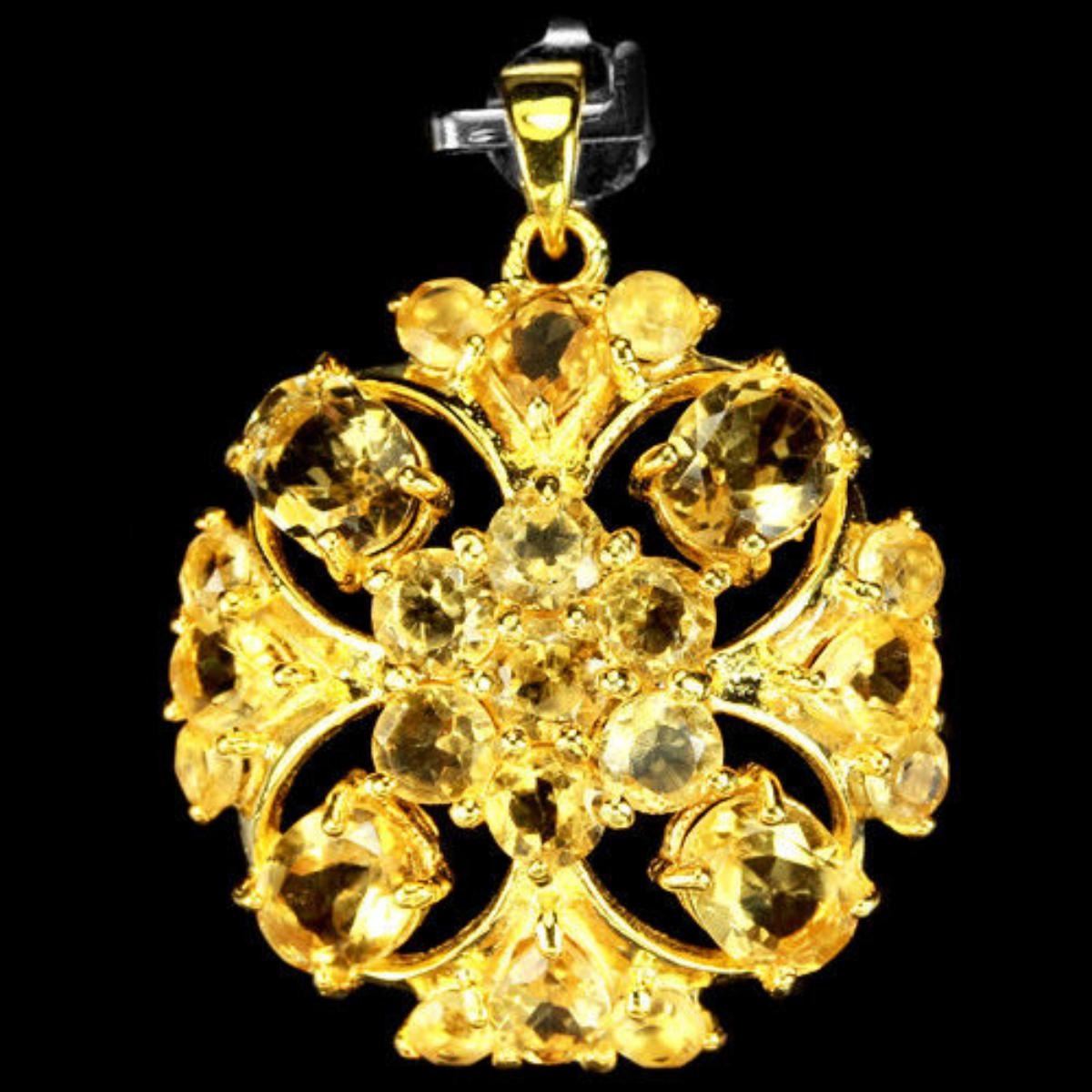 REAL ORANGISH YELLOW CITRINE 925 SILVER FLOWER PENDANT 14K YELLOW GOLD COATING;STONE SHAPEOVAL ROUND PORTUGUESE CUTSTONE DIMENSION7 X 5 MM. , 5 X 4 MM. , 4 MM. 2.7 MM.ITEM WEIGHT4.32 GRAMCOLORAAA ORANGISH YELLOWCLARITYIF, VVS - VSLUSTERDAZZLINGTREATMENTUNHEATEDORIGIN OF STONEBRAZILHARDNESS7.0FACE OF PENDANT 31 X 25 MM.