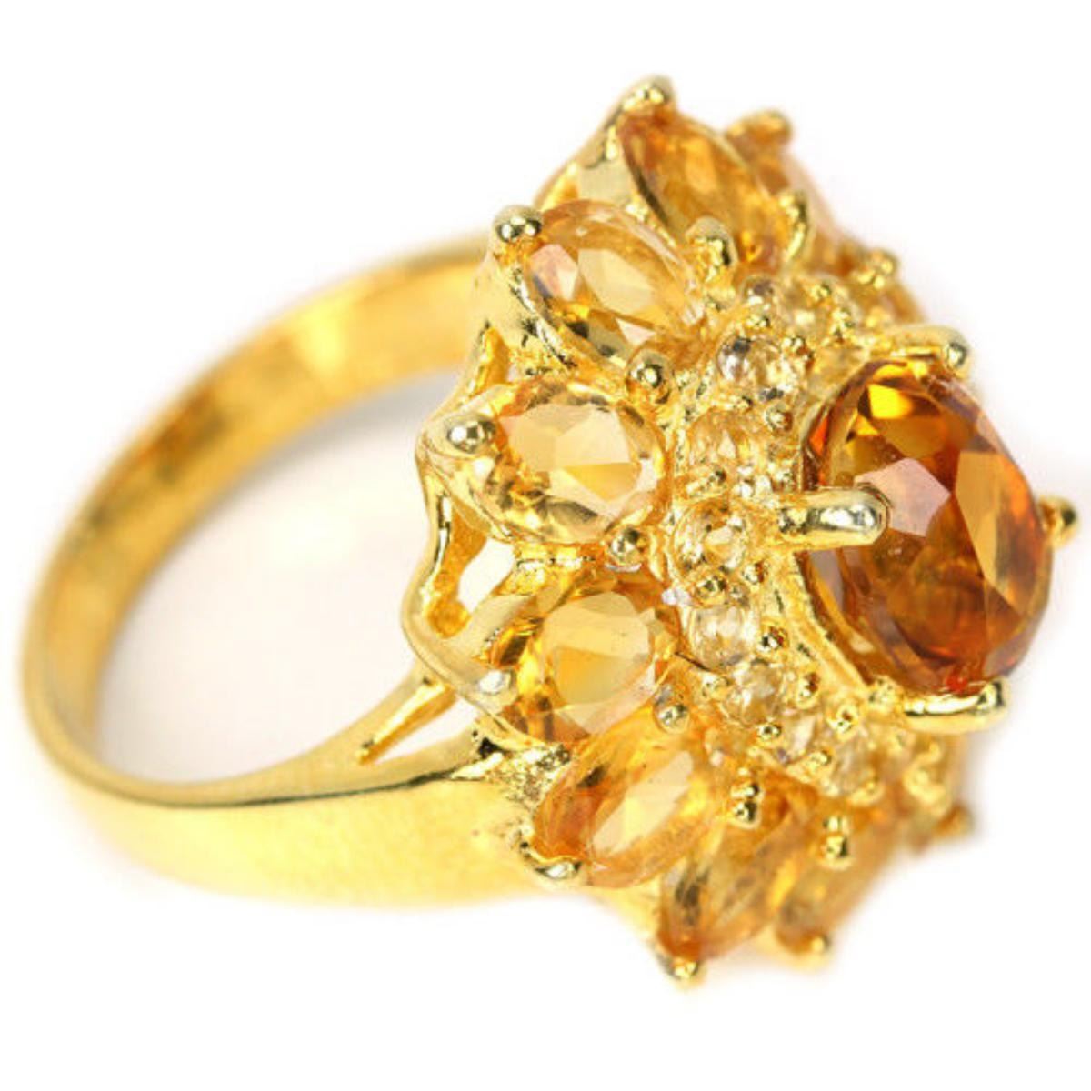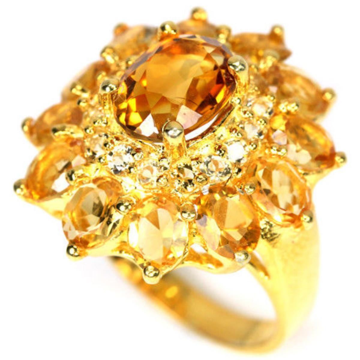 NATURAL AAA ORANGISH YELLOW CITRINE 925 SILVER RING 14K YELLOW GOLD COATING; RING SIZE6.00 ( can be resized )ITEM QUANTITY1STONE SHAPEROUND & OVALSTONE DIMENSION9.2 X 6.9 MM. , 5 X 4 MM. & 2 MM.ITEM WEIGHT7.14 GRAMCOLORORANGISH YELLOWCLARITYIF TO VVSLUSTERDAZZLINGTREATMENTUNHEATEDORIGIN OF STONEBRAZILHARDNESS7;FACE OF RING 22 X 19 MM.