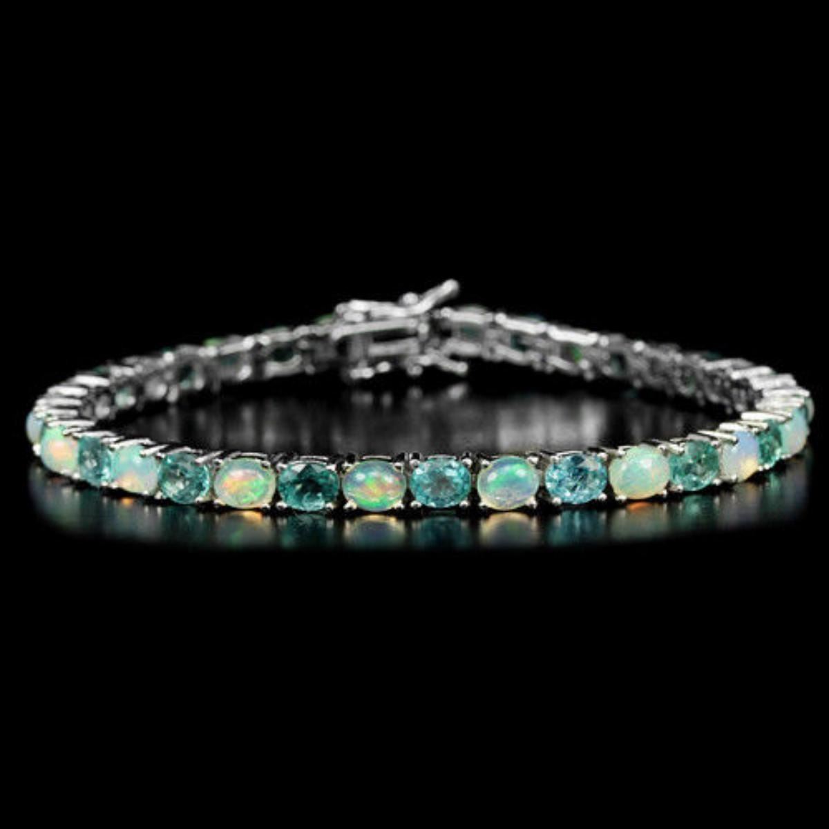 NATURAL AAA RAINBOW OPAL & APATITE 925 SILVER BRACELET 14K WHITE GOLD COATING; LENGTH OF ITEM (Inch.)7.75 ;ITEM QUANTITY1STONE SHAPEOVAL CABOCHON CUT & OVAL PORTUGUESE CUTSTONE DIMENSION6 X 4 MM.ITEM WEIGHT13.3 GRAMCOLORWHITE & PARAIBA BLUECLARITYTRANSLUCENT & VVS-VSLUSTERDAZZLINGTREATMENTUNHEATEDORIGIN OF STONEAFRICAHARDNESS5.0 - 6.5