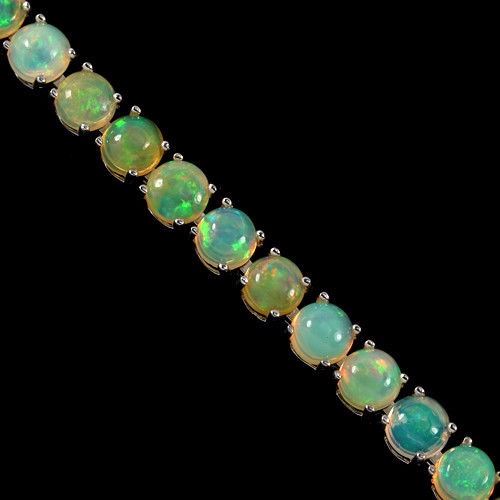 NATURAL AAA RAINBOW WHITE OPAL ROUND 925 SILVER BRACELET 14K WHITE GOLD COATING; LENGTH OF ITEM (Inch.) 9.25 ; ITEM QUANTITY 1 STONE SHAPE -ROUND CABOCHON; STONE DIMENSION- 5 MM.; ITEM WEIGHT -12.2 GRAM; COLOR -WHITE;- CLARITY -TRANSLUCENT; LUSTER -AMAZING; TREATMENT -NATURAL UNHEATED; ORIGIN OF STONE -AFRICA; HARDNESS -5.5 - 6.5