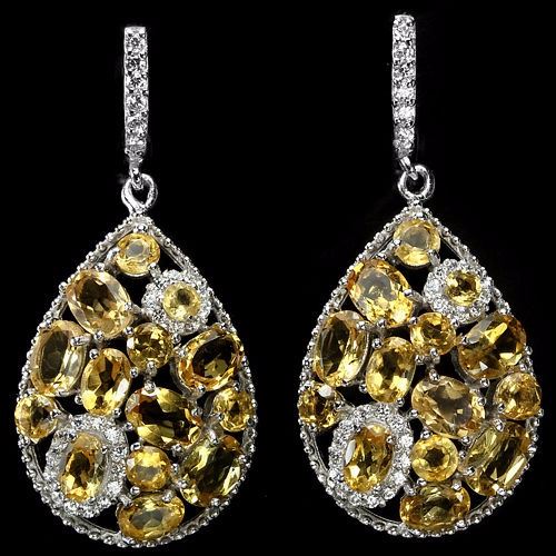 NATURAL ORANGISH YELLOW CITRINE  CZ 925 SILVER EARRING 14K WHITE GOLD COATING; STONE SHAPE OVAL  ROUND STONE DIMENSION 7 X 5 MM. , 6 X 4 MM. ,.4 MM. , 3 MM. ITEM WEIGHT -12.84 GRAM COLOR -ORANGISH YELLOW; CLARITY -VVS TO VS; LUSTER- DAZZLING; TREATMENT -NATURAL UNHEATED; ORIGIN OF STONE- BRAZIL; HARDNESS 7; OTHER FACE OF EARRING 47 X 22 MM. ; CUBIC ZIRCONIA -1.7 MM. , 1.3 MM.
