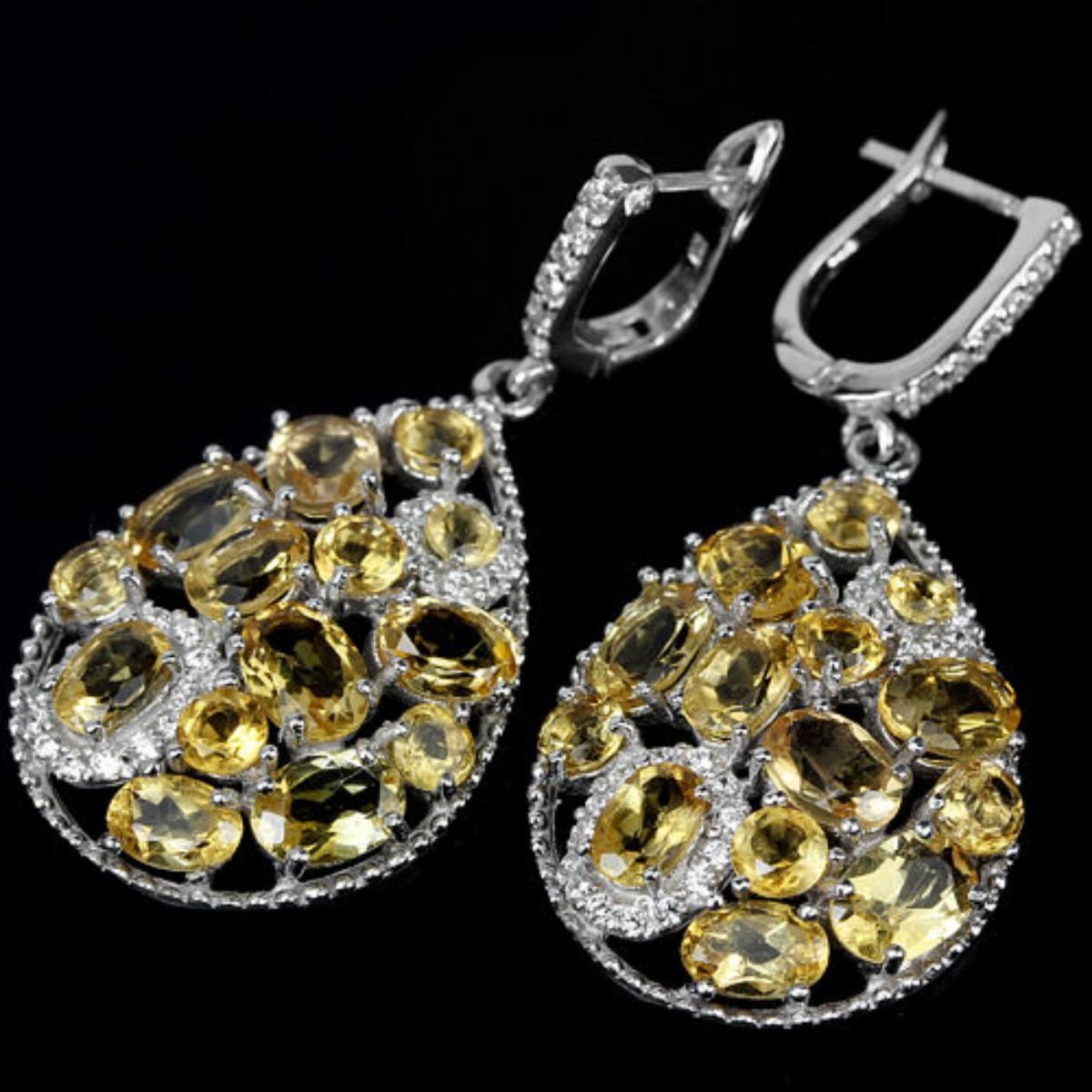 NATURAL ORANGISH YELLOW CITRINE CZ 925 SILVER EARRING 14K WHITE GOLD COATING; STONE SHAPE OVAL ROUND STONE DIMENSION 7 X 5 MM. , 6 X 4 MM. ,.4 MM. , 3 MM. ITEM WEIGHT -12.84 GRAM COLOR -ORANGISH YELLOW; CLARITY -VVS TO VS; LUSTER- DAZZLING; TREATMENT -NATURAL UNHEATED; ORIGIN OF STONE- BRAZIL; HARDNESS 7; OTHER FACE OF EARRING 47 X 22 MM. ; CUBIC ZIRCONIA -1.7 MM. , 1.3 MM.