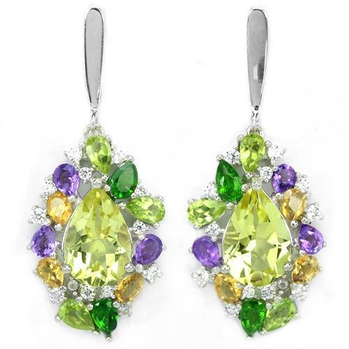 REAL QUARTZ AMETHYST PERIDOT CITRINE 925 SILVER EARRING 14K WHITE GOLD COATING; STONE SHAPE PEAR STONE DIMENSION 12 X 8 MM. , 5 X 3 MM. , 4 X 3 MM. ITEM WEIGHT 8.8 GRAM COLOR MULTI COLOR CLARITY VVS VS TO SI LUSTER BEWITCHING TREATMENT NATURAL UNHEATED ORIGIN OF STONE BRAZIL, RUSSIA ASIA HARDNESS 5 - 7 OTHER FACE OF EARRING 41 X 16 MM. WHITE CUBIC ZIRCONIA 1.7 MM. , 1.5 MM.