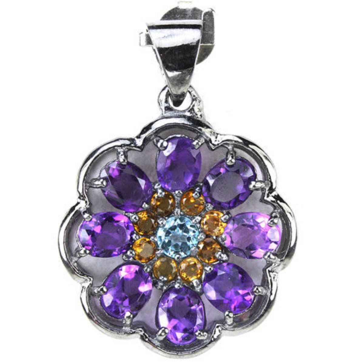 Main Stone:AmethystMetal Purity:925 parts per 1000Main Stone Shape:OvalMetal:Sterling SilverMain Stone Treatment:Not Enhanced;Secondary Stone:Topaz, CitrineMain Stone Color:PurpleTotal Carat Weight:3.55Main Stone Creation:NaturalMAIN STONE SIZE:5 X 4 MM.Theme:Flowers & Plants