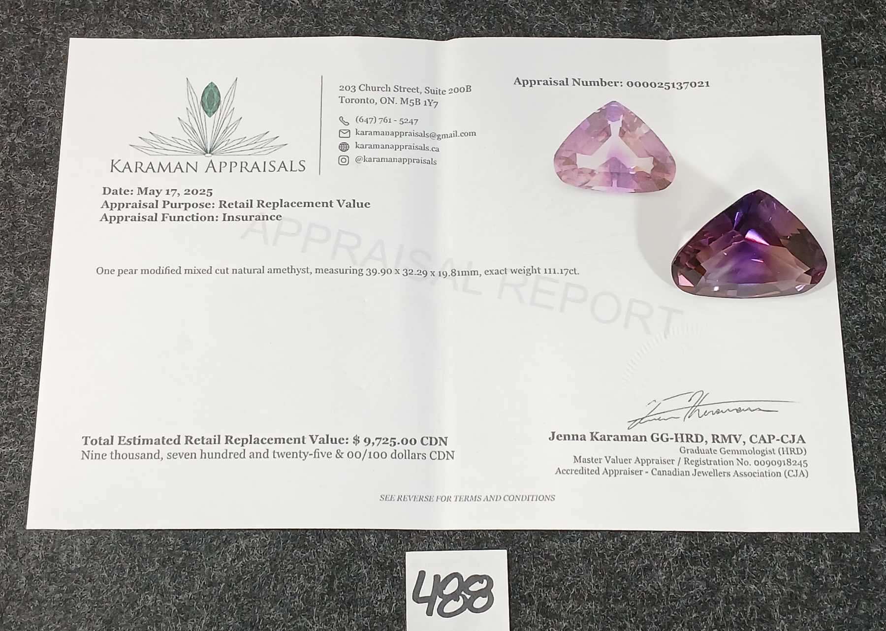 NOTE: INCL JEWELLERY APPRAISAL CERTIFICATE - SEE ALL PICS