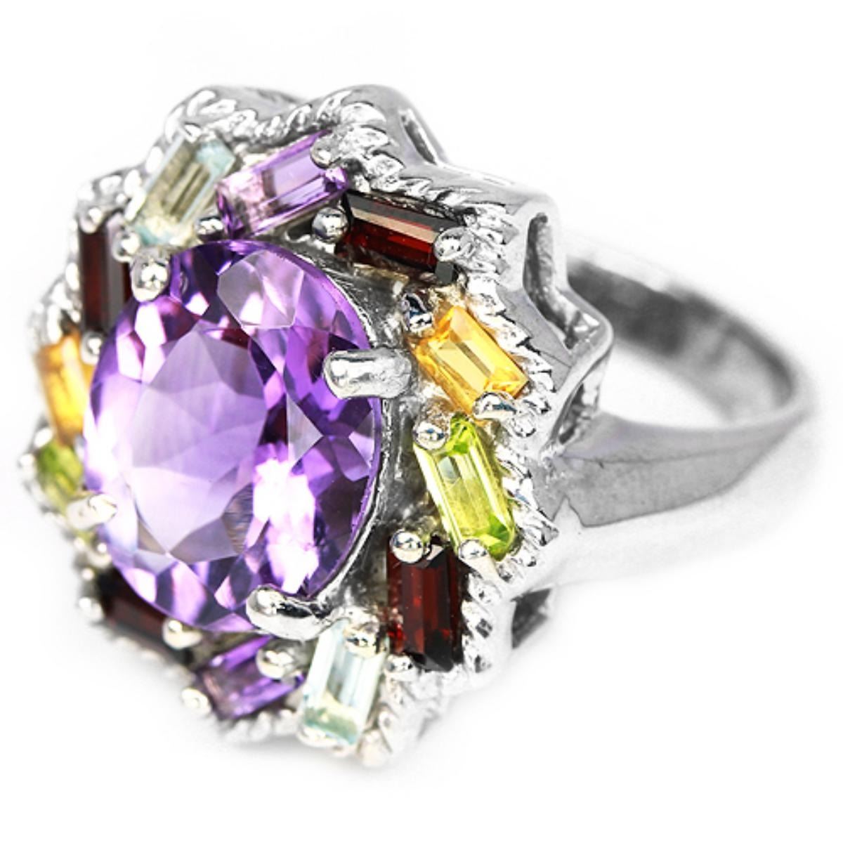 REAL AMETHYST TOPAZ CITRINE PERIDOT GARNET 925SILVER RING 14K WHITE GOLD COATING; RING SIZE8.00 ( resizable )ITEM QUANTITY1STONE SHAPEBAGUETTE & OVALSTONE DIMENSION12 X 10 MM. & 5 X 2 MM.ITEM WEIGHT8.4 GRAMCOLORMULTI COLORCLARITYIF, VVS - VSLUSTERALLURING;TREATMENTNATURAL UNHEATED & IRRADIATION;ORIGIN OF STONEAFRICA, ASIA, BRAZIL & CAMBODIA;HARDNESS6.5 - 8.0;FACE OF RING 20 X 19 MM.