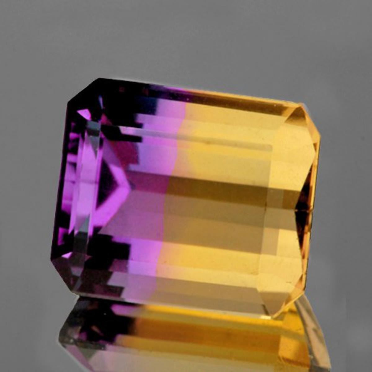 WEIGHT : 8.28 ctsSTONE NAME : Natural Ametrine (Bolivianite)SIZE ( L x W x D ) : 13.15 x 10.91 x 7.94 mmCOLOR : Purple & GoldSHAPE : OctagonQUANTITY : 1 pieceLUSTER : Excellent CLARITY : FLAWLESS-VVS BEST QUALITYHARDNESS : 7ORIGIN : Anahi Mine, Bolivia TREATMENT : 100% Natural Unheated