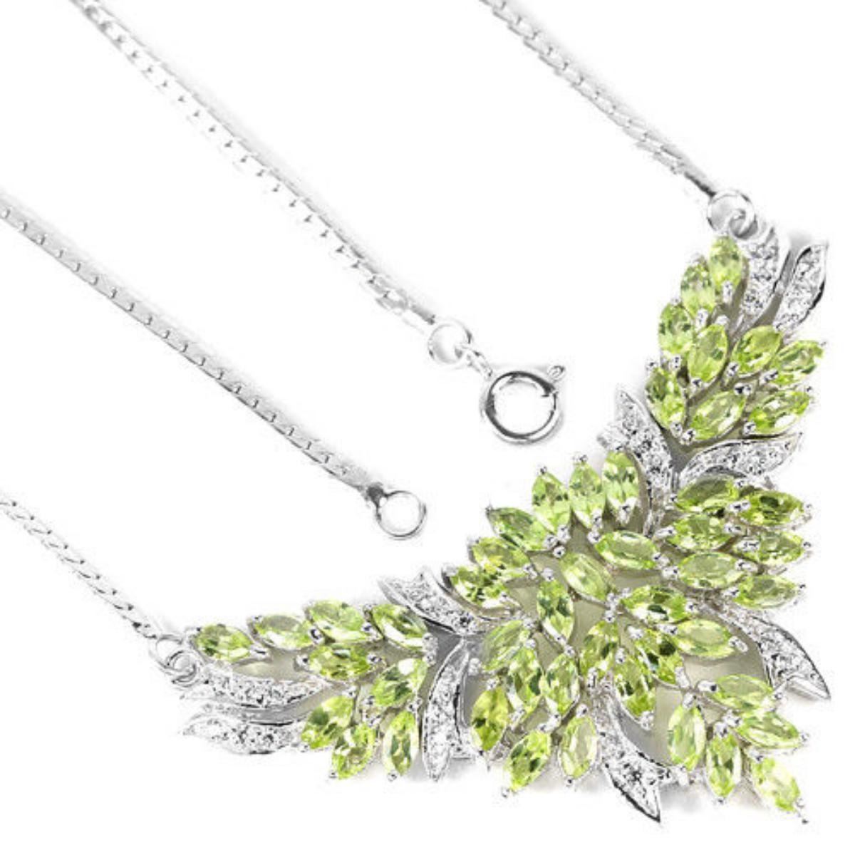 NATURAL APPLE GREEN PERIDOT & WHITE CZ 925SILVER NECKLACE 14K WHITE GOLD COATING; LENGTH OF ITEM (Inch.)17.50 ;ITEM QUANTITY1STONE SHAPEMARQUISESTONE DIMENSION5 X 2.5 MM.ITEM WEIGHT16.9 GRAMCOLORAPPLE GREENCLARITYIF - VVSLUSTERDAZZLINGTREATMENTUNHEATEDORIGIN OF STONEASIAHARDNESS6.5WHITE CUBIC ZIRCONIA 1.5 MM.