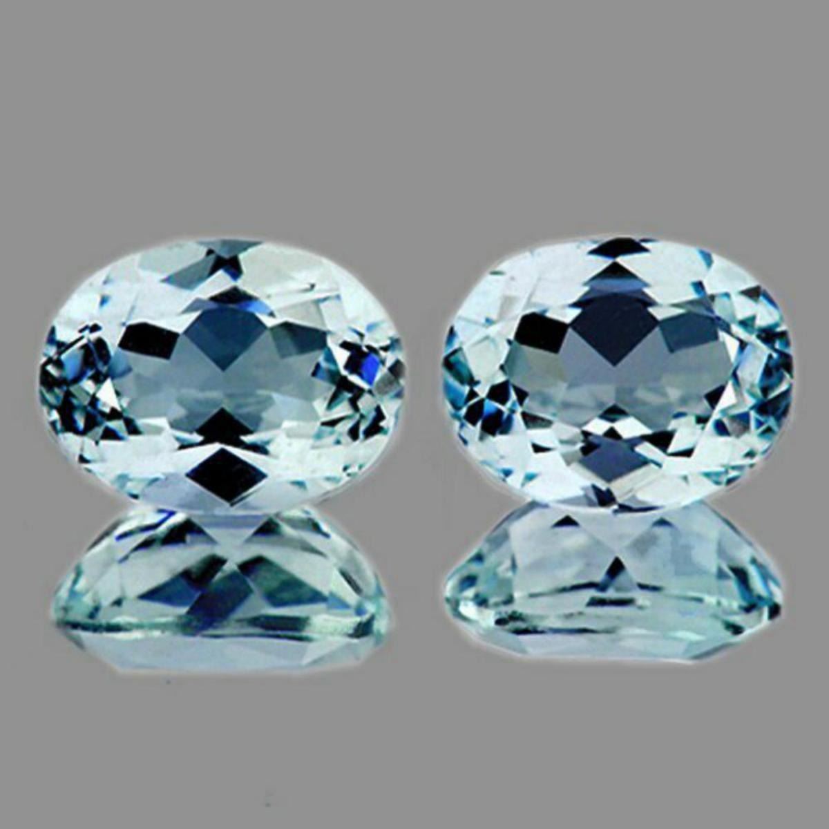 Natural AquamarineSIZE ( L x W x D ) : 6 x 5 mm;COLOR : Blue;SHAPE : Oval;QUANTITY : 2 pieces ;LUSTER : Excellent;CLARITY : IF-VVS;HARDNESS : 8;ORIGIN : Santa Maria de Itabira; TREATMENT : 100% Natural, Unheated;