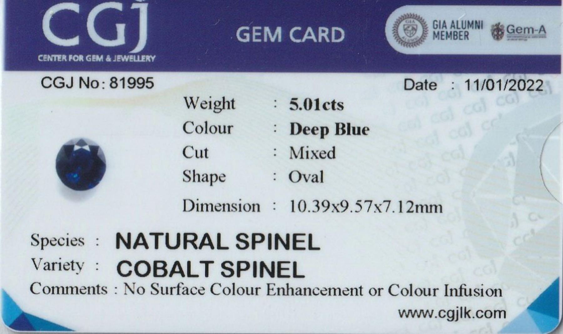 Natural Untreated Ceylon Deep Blue Spinel 5.01 Cts - VS....Oval/round Cut ...size 10.39 x 9.57 x 7.12 MM...Origin - Ceylon....