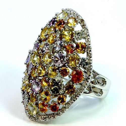 NATURAL CEYLONG MIX SAPPHIRE 11.75CT / DIAMOND 0.63CT / 14K WHITE GOLD RING 17.04GRAM