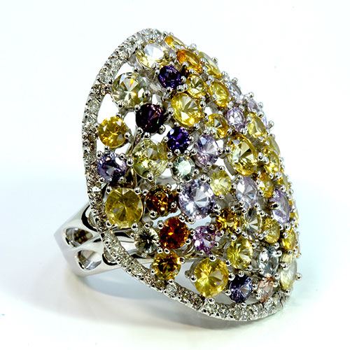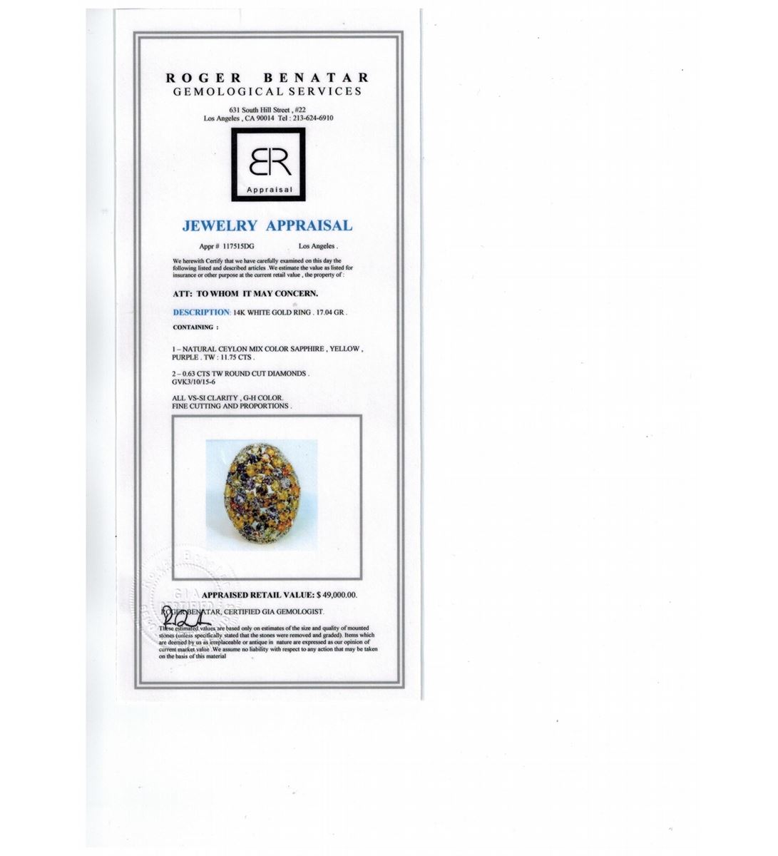 NATURAL CEYLONG MIX SAPPHIRE 11.75CT / DIAMOND 0.63CT / 14K WHITE GOLD RING 17.04GRAM