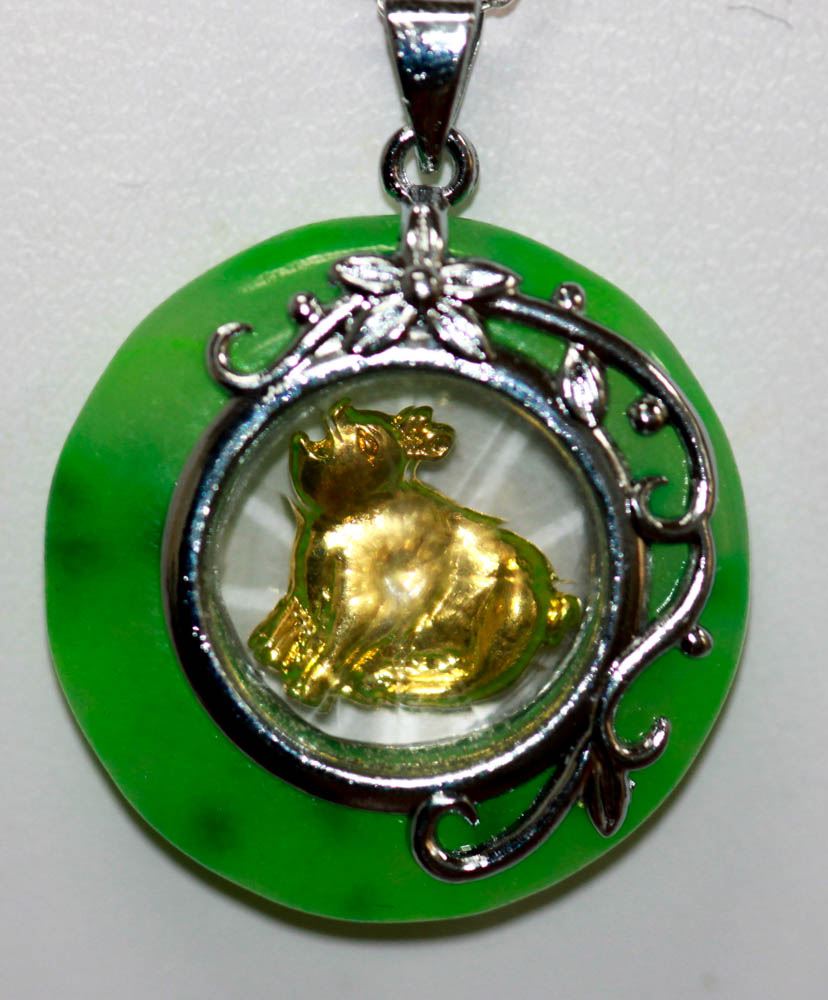 NATURAL CHINESE GREEN JADE PENDANT YEAR OF THE BOAR NEC **|**|** Main stone: GREEN JADE; Chinese BOAR Design; Type: SILVER-TONE Pendant