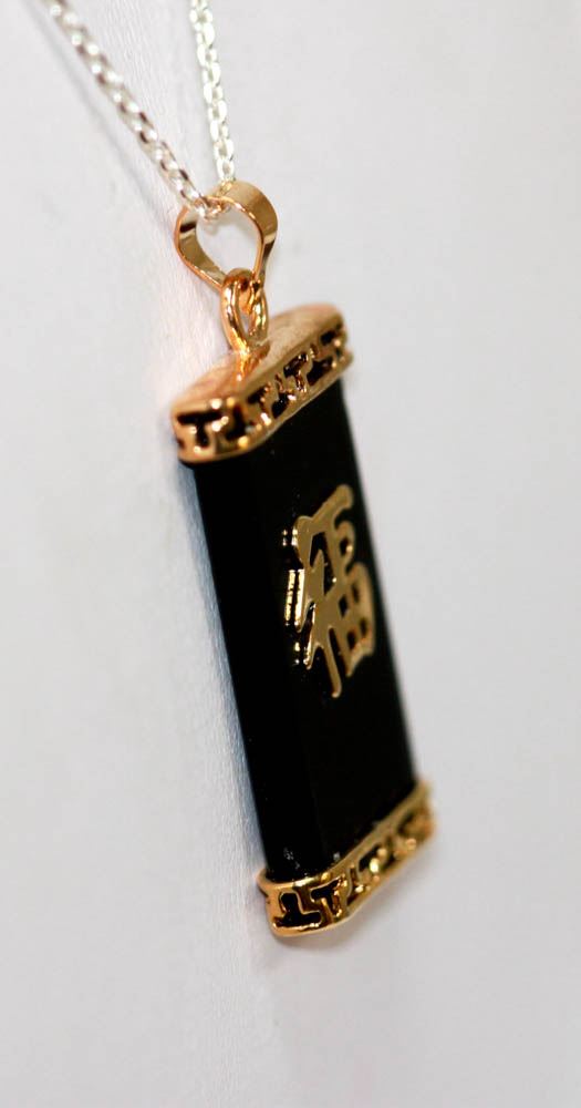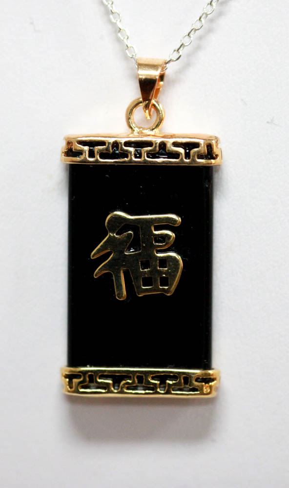 NATURAL CHINESE STYLE WRITING BLACK JADE YELLOW BRASS P **|**|** Main stone: BLACK JADE; Chinese Writing Design; Type: Gold-TONE Pendant