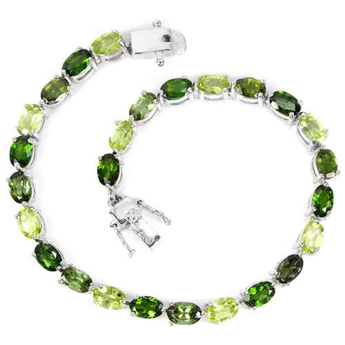 CHROME DIOPSIDE PERIDOT TOURMALINE 925 SILVER BRACELET 14K WHITE GOLD COATING; LENGTH OF ITEM (Inch.) 7.25 ( RESIZE : NO ) ITEM QUANTITY -1; STONE SHAPE -OVAL; STONE DIMENSION -6 X 4 MM.; ITEM WEIGHT -13.9 GRAM; COLOR -GREEN; CLARITY -VVS VS TO SI; LUSTER -ALLURING; TREATMENT -NATURAL UNHEATED; ORIGIN OF STONE -RUSSIA, AFRICA ASIA; HARDNESS 5 - 7.5