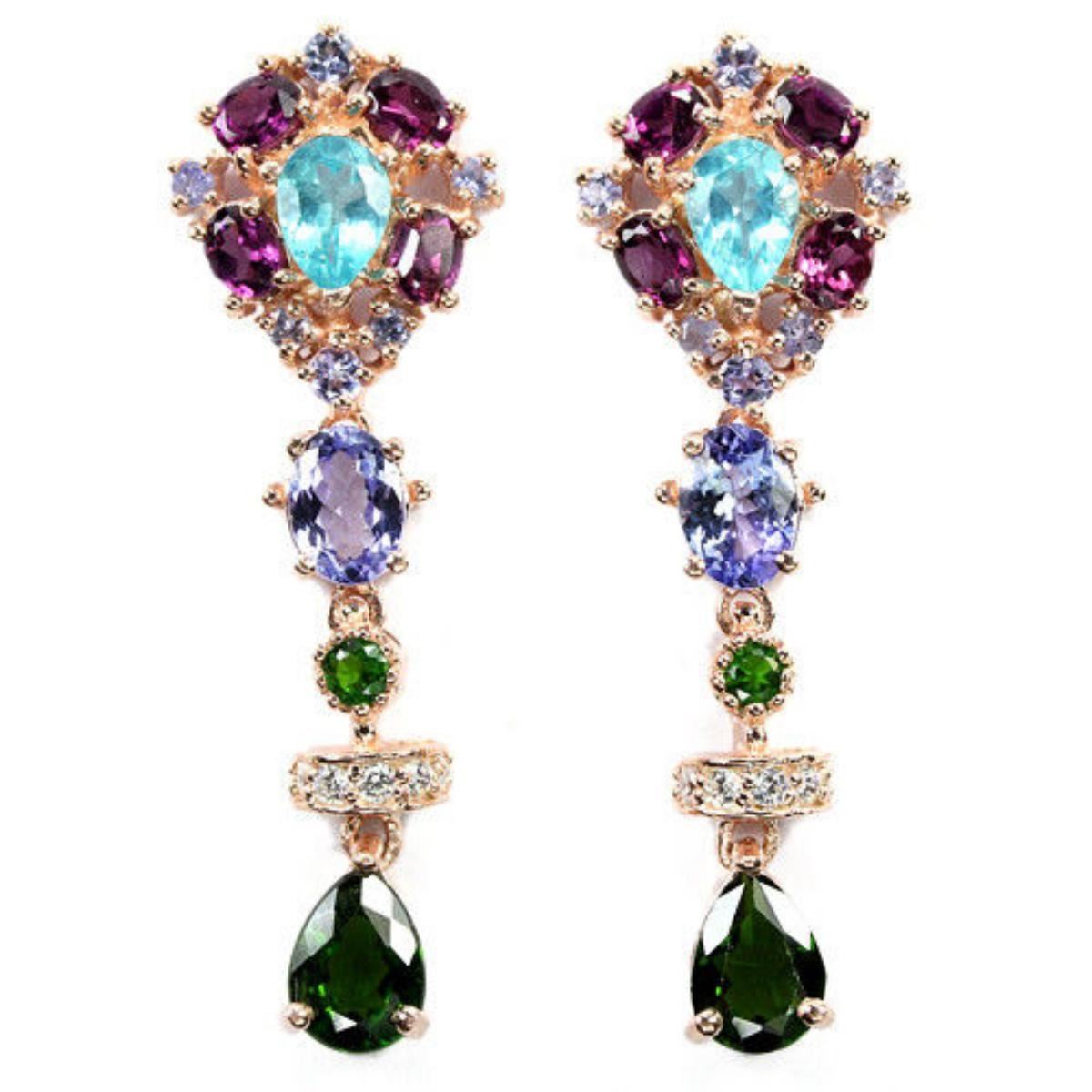 NATURAL CHROME DIOPSIDE RHODOLITE & CZ 925 SILVER EARRING 14K PINK GOLD COATING; STONE SHAPEMIXED SHAPESTONE DIMENSION8 X 6 MM. , 7 X 5 MM. , 4 X 3 MM. , 3 MM. , 2.5 MM. & 2 MM.ITEM WEIGHT8.8 GRAMCOLORMULTI COLORCLARITYIF, VVS - VSLUSTERDAZZLINGTREATMENTUNHEATEDORIGIN OF STONEAFRICA & TANZANIAHARDNESS5 - 7.5FACE OF EARRING 45 X 15 MM. WHITE CUBIC ZIRCONIA 1.7 MM.