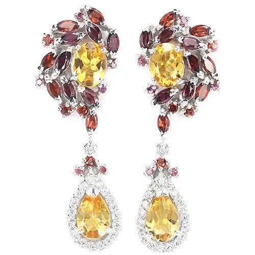 NATURAL CITRINE GARNET RHODOLITE CZ 925 SILVER EARRING 14K WHITE GOLD COATING; STONE SHAPE MIXED SHAPE STONE DIMENSION 10 X 7 MM. , 9 X 7 MM. , 5 X 2.5 MM. , 2.2 MM. , 1.7 MM. ITEM WEIGHT 15.9 GRAM COLOR MULTI COLOR CLARITY IF TO VVS LUSTER ENCHANTING TREATMENT NATURAL UNHEATED ORIGIN OF STONE BRAZIL, CAMBODIA AFRICA HARDNESS 7 - 7.5 OTHER FACE OF EARRING 48 X 18 MM. WHITE CUBIC ZIRCONIA 1.5 MM.