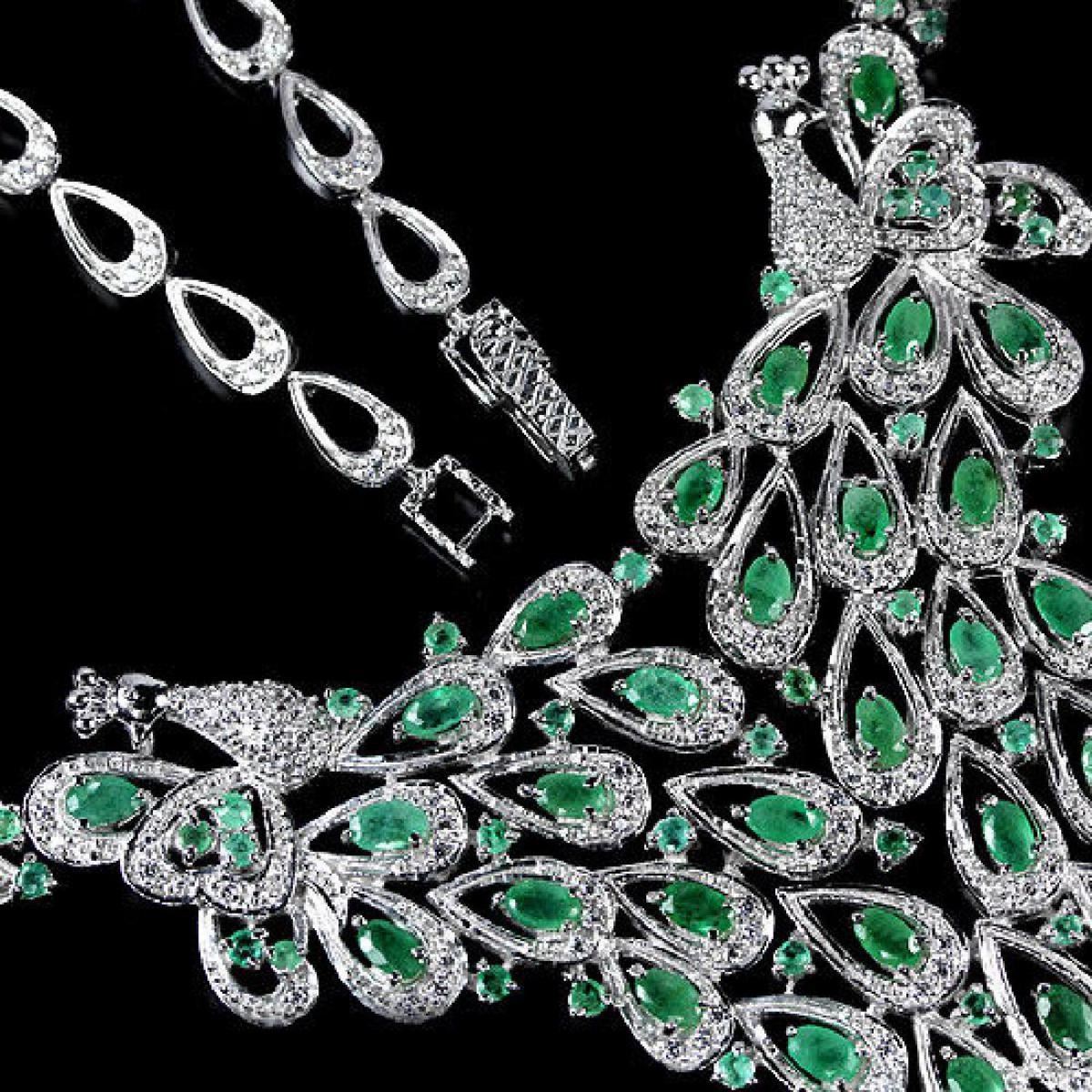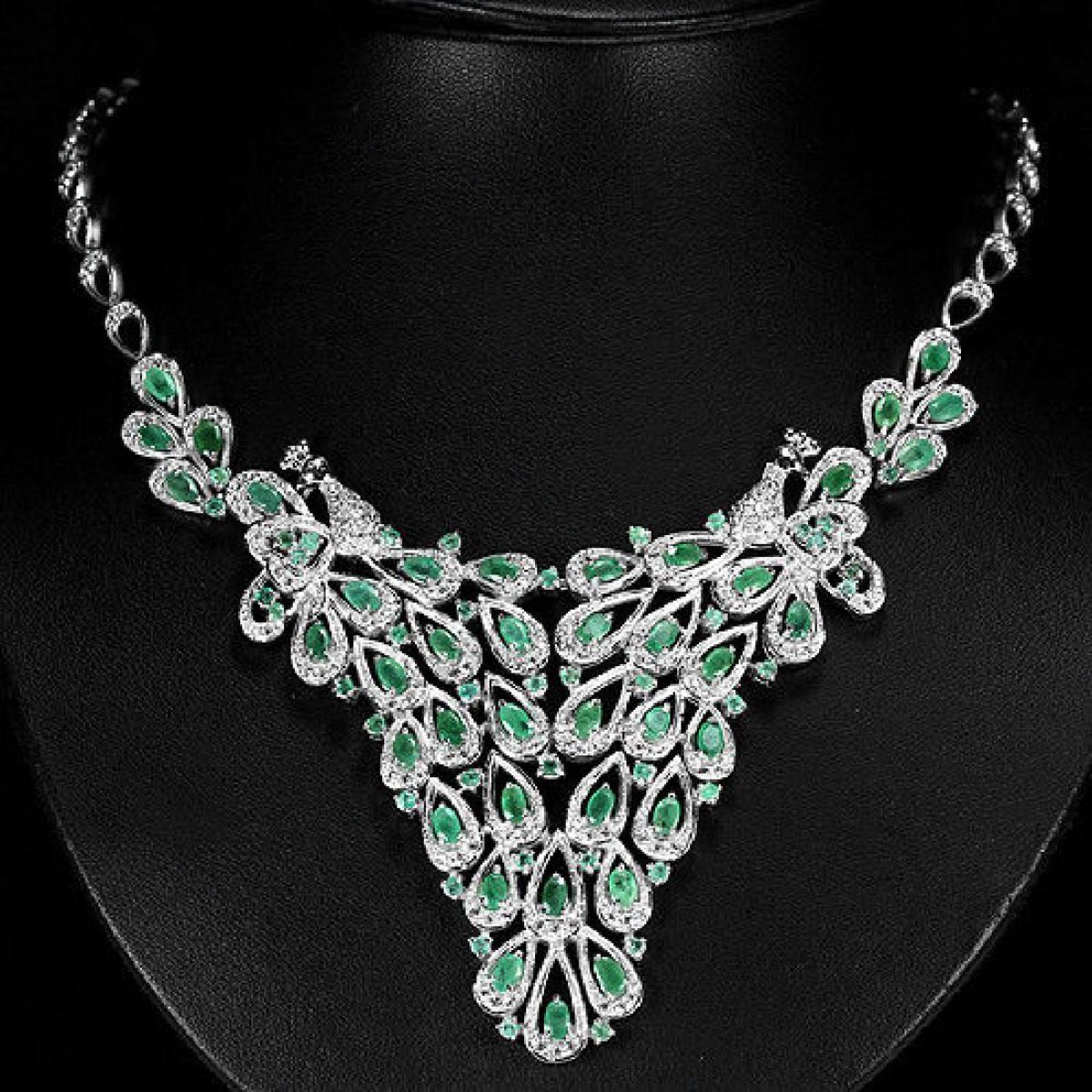 NATURAL GREEN EMERALD COLUMBIAN & CZ 925 SILVER NECKLACE 14K WHITE GOLD COATING; LENGTH OF ITEM (Inch.) ITEM QUANTITY 1 STONE SHAPE OVAL & ROUND FACET CUT STONE DIMENSION 5 X 3 MM. , 2.2 MM. ITEM WEIGHT 60.5 GRAM COLOR GREEN CLARITY TRANSLUCENT LUSTER -ENCHANTING; TREATMENT -NATURAL UNHEATED; ORIGIN OF STONE -COLUMBIA; HARDNESS -7.5; ;WHITE CUBIC ZIRCONAI 1.5 MM. , 1.2 MM.