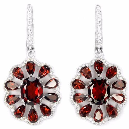 NATURAL DARK ORANGE RED GARNET CZ 925 SILVER EARRING 14K WHITE GOLD COATING; STONE SHAPE OVAL PEAR PORTUGUESE CUT STONE DIMENSION 8 X 6 MM. 5 X 3 MM. ITEM WEIGHT 9.38 GRAM COLOR DARK ORANGE RED CLARITY IF - VVS LUSTER ENCHANTING TREATMENT UNHEATED ORIGIN OF STONE CAMBODIA HARDNESS 7.5 OTHER FACE OF EARRING 38 X 19 MM. WHITE CUBIC ZIRCONIA 1 MM.