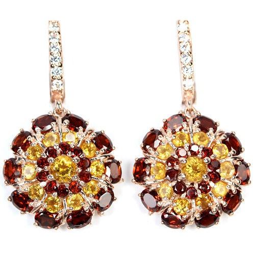 NATURAL DARK ORANGE RED GARNET CITRINE 925;SILVER EARRING 14K PINK GOLD COATING;STONE SHAPE -ROUND OVAL PORTUGUESE CUT; STONE DIMENSION 6.1 MM. , 5 X 4 MM. , 3.5 MM. 2.7 MM. ITEM WEIGHT 10.08 GRAM COLOR MULTI COLOR; CLARITY IF, VVS - VS; LUSTER DAZZLING TREATMENT UNHEATED ORIGIN OF STONE CAMBODIA BRAZIL HARDNESS 7.0 - 7.5 ; FACE OF EARRING 34 X 9 MM. WHITE CUBIC ZIRCONIA 1.7 MM.