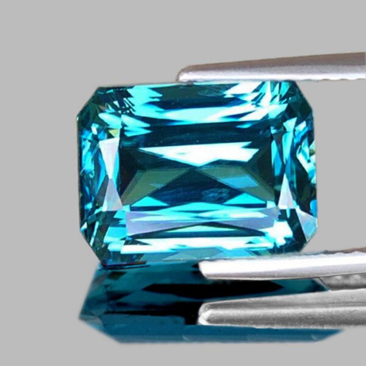 WEIGHT : Approx: 3.00 cts;STONE NAME : Natural Zircon (Earthly Mined)SIZE ( L x W x D ) : 8.13 x 6.28 x 4.25 mm;COLOR : Electric Blue AAA Color;SHAPE : Octagon;QUANTITY : 1 piece;LUSTER : Excellent! ;CLARITY : FLAWLESS-VVS1    ;HARDNESS : 7.5;ORIGIN : Cambodia; Untreatd