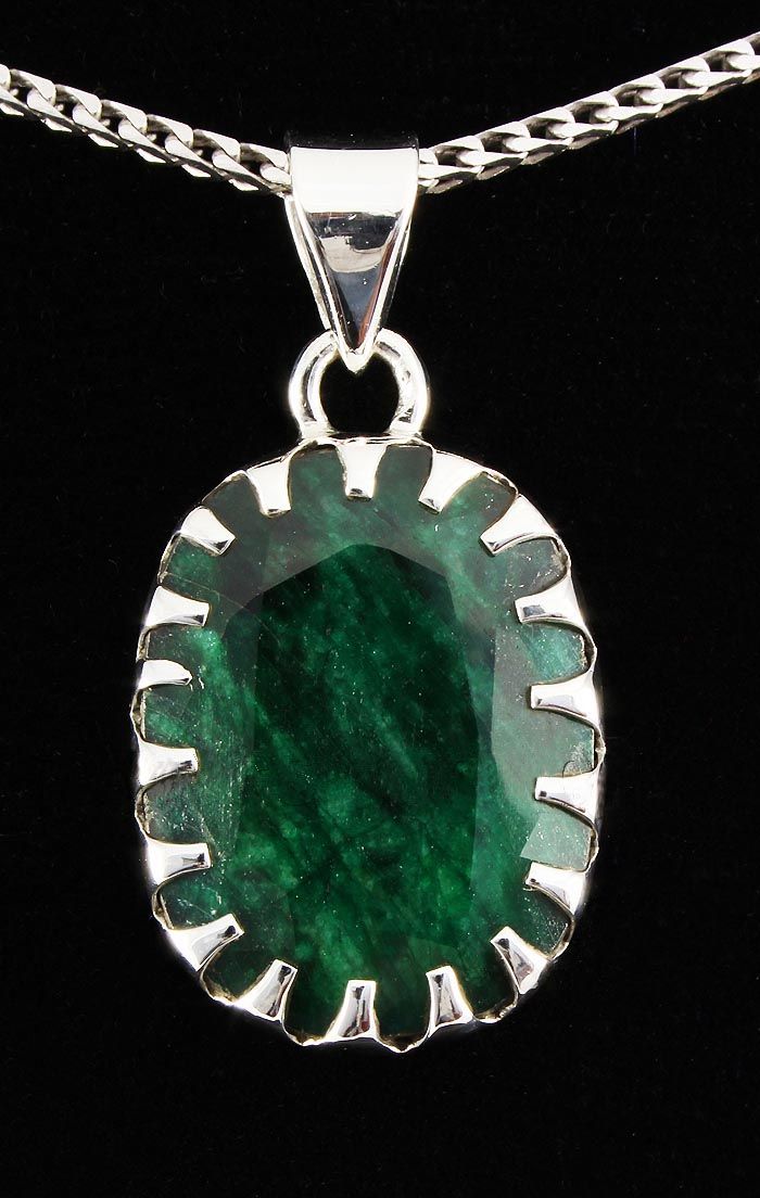 NATURAL EMERALD BERYL 27.40CTW SILVER PENDANT **|**|** STERLING SILVER OVAL PENDANT WITH 20X15MM APPROX EMERALD BERYL GEMSTONE ; MSRP: $100