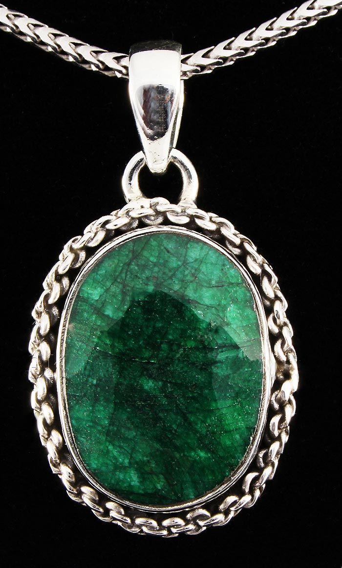 NATURAL EMERALD BERYL 35.53CTW SILVER PENDANT **|**|** STERLING SILVER OVAL PENDANT WITH 19X14MM APPROX EMERALD BERYL GEMSTONE ; MSRP: $100