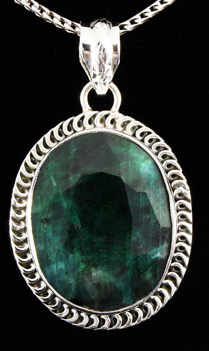 STERLING SILVER OVAL PENDANT WITH 24X19MM APPROX EMERALD BERYL GEMSTONE