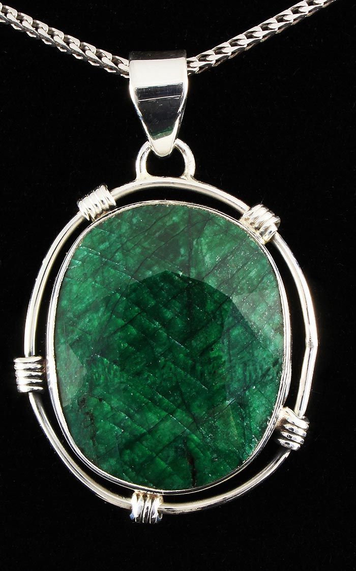 NATURAL EMERALD BERYL 58.30CTW SILVER PENDANT **|**|** STERLING SILVER OVAL PENDANT WITH 26X22MM APPROX EMERALD BERYL GEMSTONE ; MSRP: $200