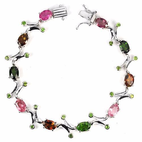 NATURAL TOURMALINE TSAVORITE GARNET 925 SILVER BRACELET 14K WHITE ;GOLD COATING; LENGTH OF ITEM (Inch.)6.75;STONE SHAPE-OVAL ROUND PORTUGUESE CUT;STONE DIMENSION7 X 5 MM. 2.2 MM.;ITEM WEIGHT-92.5 Carats;COLORMULTI COLOR;CLARITYVVS, VS - SI 1;LUSTERDAZZLING;TREATMENT-UNHEATED;ORIGIN OF STONE-AFRICA;HARDNESS7.0 - 7.5
