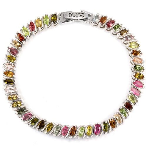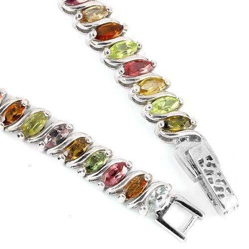 NATURAL MULTI COLOR TOURMALINE 925 SILVER BRACELET 14K WHITE GOLD COATING;LENGTH OF ITEM (Inch.) 7.50 ( RESIZE : NO ) ITEM QUANTITY 1 STONE SHAPE MARQUISE PORTUGUESE CUT STONE DIMENSION 5 X 2.5 MM. ITEM WEIGHT 17.2 GRAM COLOR MULTI COLOR CLARITY VVS, VS - SI LUSTER DELUXE TREATMENT UNHEATED ORIGIN OF STONE AFRICA HARDNESS 7.5