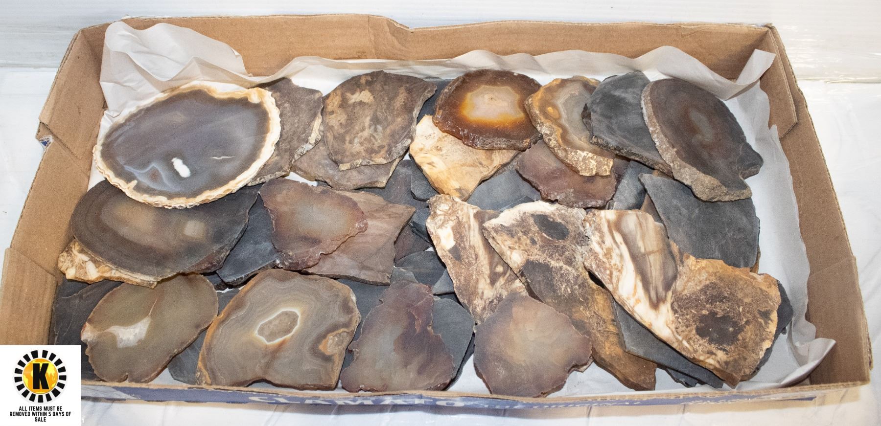NATURAL GEODE SLICES LARGE BOX LOT ASSORTED