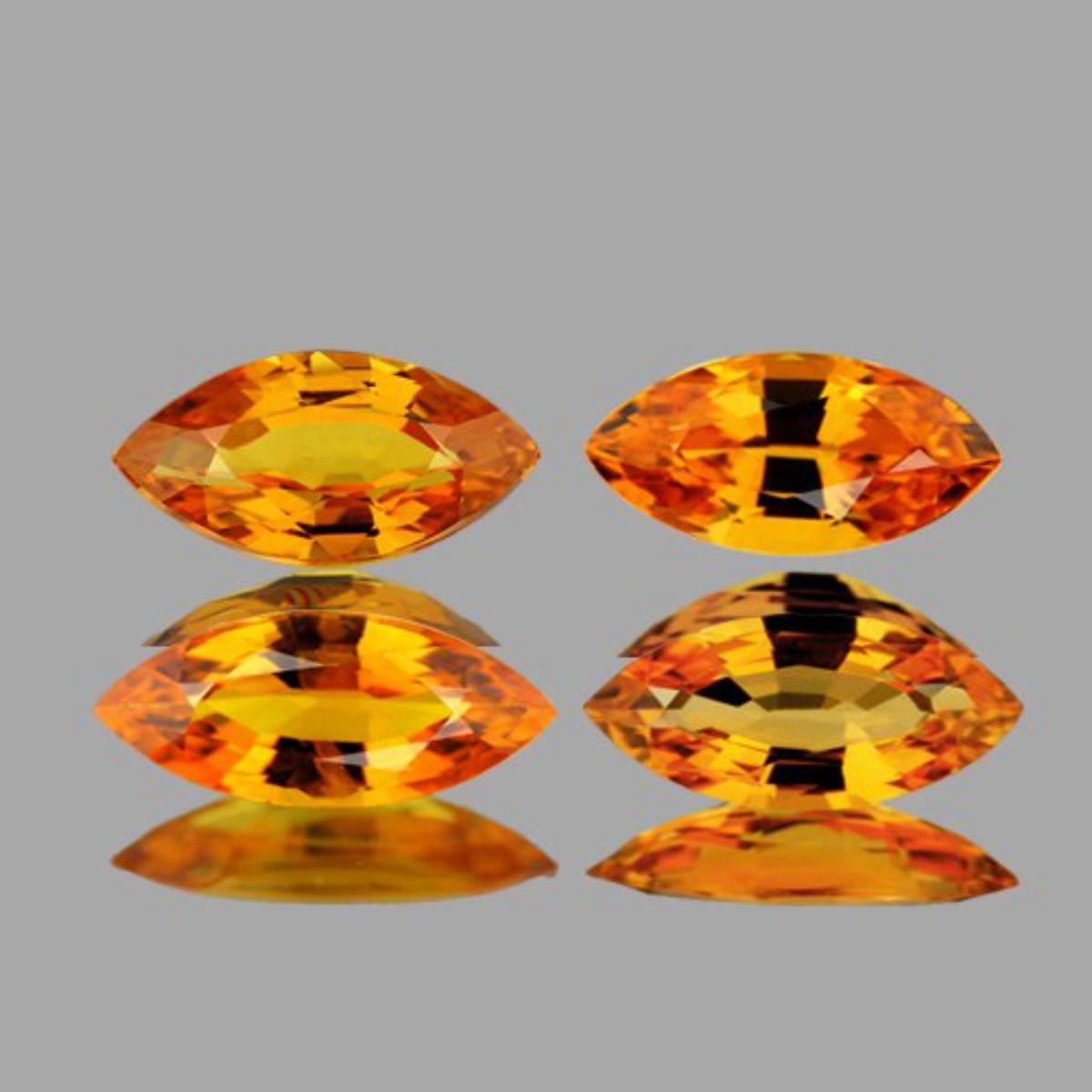 Natural Sapphire (Earthly Mined)SIZE ( L x W x D )6x3 mm;COLOR : Golden Orange BEST COLORSHAPE : MarquiseQUANTITY : 4 piecesLUSTER : ExcellentCLARITY : FLAWLESS-VVS1HARDNESS : 9ORIGIN : Ceylon TREATMENT : Heated