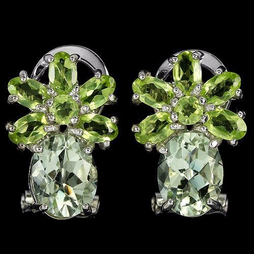 NATURAL AAA GREEN AMETHYST & PERIDOT 925 SILVER EARRING 14K WHITE GOLD COATING; STONE SHAPEOVAL & ROUND PORTUGUESE CUTSTONE DIMENSION-9 X 7 MM. , 5 X 3 MM. , 3 MM.;ITEM WEIGHT-5.94 GRAM;COLOR-GREEN;CLARITY-IF TO VVS;LUSTER-DAZZLING;TREATMENT-NATURAL UNHEATED;ORIGIN OF STONE-BRAZIL & ASIA;HARDNESS-6.5 - 7;FACE OF EARRING 18 X 12 MM.