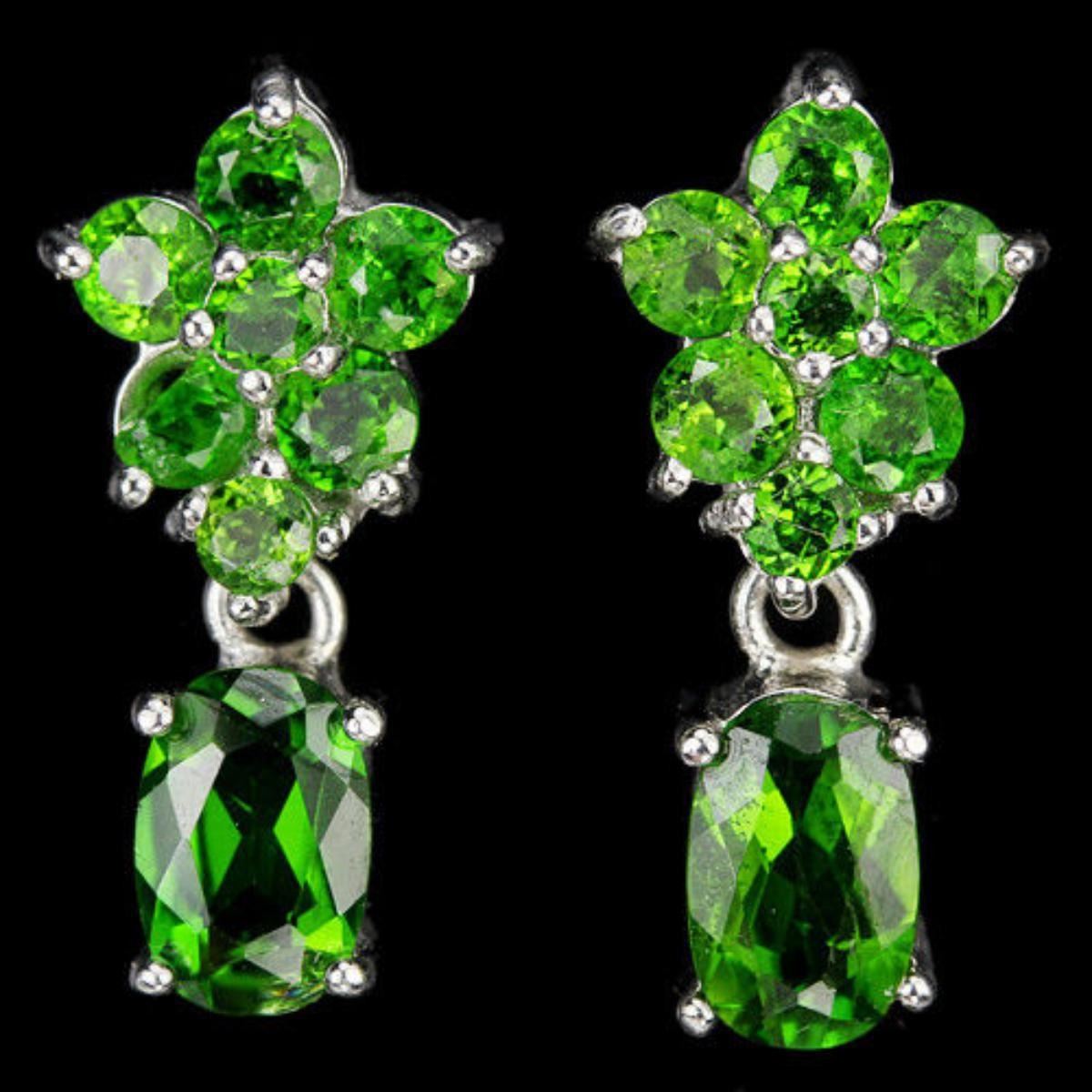 NATURAL GREEN CHROME DIOPSIDE 925 SILVER FLOWER EARRING 14K WHITE GOLD COATING; STONE SHAPEOVAL & ROUNDSTONE DIMENSION6 X 4 MM. , 3 MM. & 2 MM.ITEM WEIGHT2.5 GRAMCOLORGREENCLARITYVVS - VSLUSTERDAZZLINGTREATMENTUNHEATEDORIGIN OF STONEAFRICAHARDNESS7.0FACE OF EARRING 17 X 8 MM.