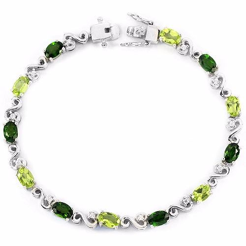 NATURAL CHROME DIOPSIDE PERIDOT CZ 925 SILVER BRACELET 14K WHITE GOLD COATING; LENGTH OF ITEM (Inch.)6.70 ( RESIZE : NO )ITEM QUANTITY1STONE SHAPEOVALSTONE DIMENSION6 X 4 MM.ITEM WEIGHT11.4 GRAMCOLORGREENCLARITYVVS TO VSLUSTERENCHANTINGTREATMENTNATURAL UNHEATEDORIGIN OF STONERUSSIA ASIAHARDNESS5 - 6.5OTHERWHITE CUBIC ZIRCONIA 1.7 MM.
