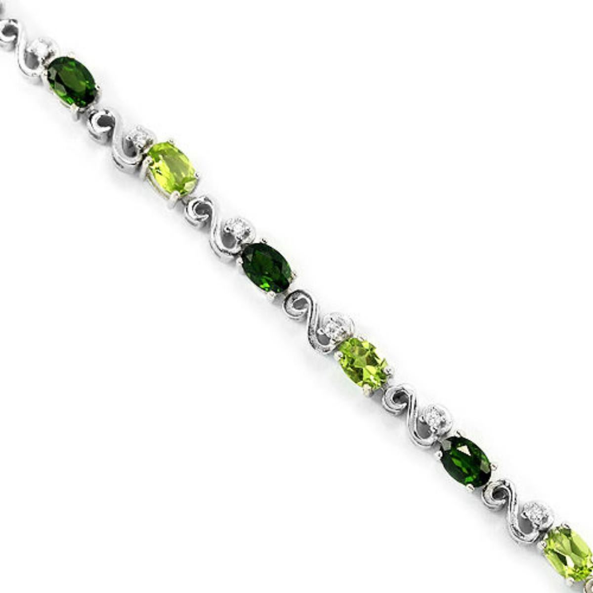 NATURAL CHROME DIOPSIDE PERIDOT CZ 925 SILVER BRACELET 14K WHITE GOLD COATING; LENGTH OF ITEM (Inch.)6.70 ( RESIZE : NO )ITEM QUANTITY1STONE SHAPEOVALSTONE DIMENSION6 X 4 MM.ITEM WEIGHT11.4 GRAMCOLORGREENCLARITYVVS TO VSLUSTERENCHANTINGTREATMENTNATURAL UNHEATEDORIGIN OF STONERUSSIA ASIAHARDNESS5 - 6.5OTHERWHITE CUBIC ZIRCONIA 1.7 MM.