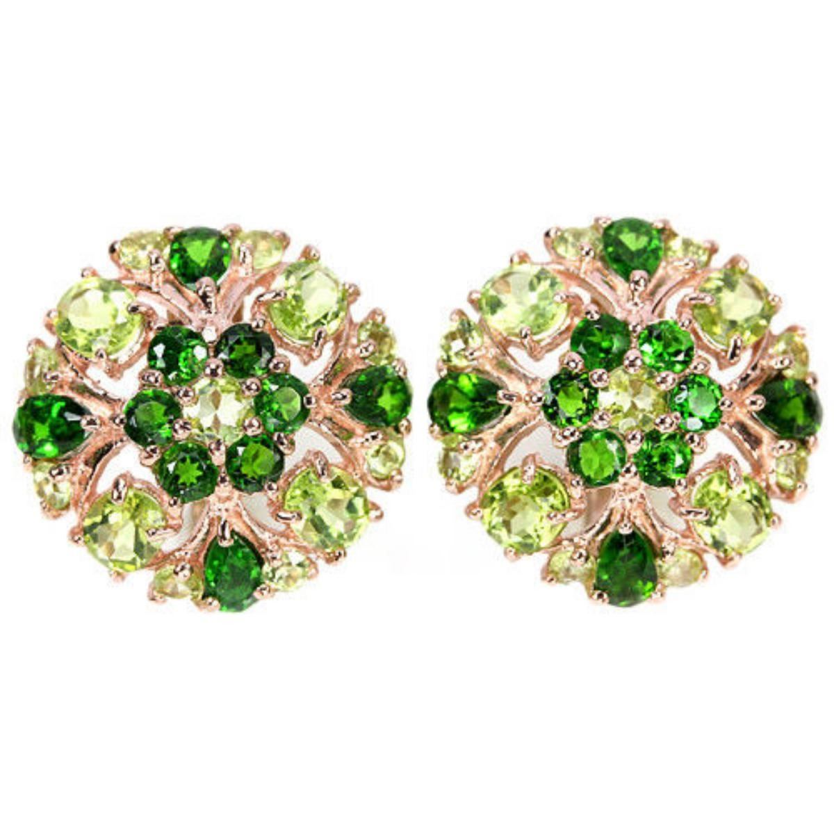 NATURAL GREEN CHROME DIOPSIDE & PERIDOT 925 SILVER EARRING 14K PINK GOLD COATING; STONE SHAPEMIXED SHAPESTONE DIMENSION5 X 4 MM. , 5 X 3 MM. , 3.5 MM. 3 MM. & 2.5 MM.ITEM WEIGHT7.5 GRAM;COLORGREEN & APPLE GREEN;CLARITYIF, VVS - VS;LUSTERDAZZLING;TREATMENTUNHEATED;ORIGIN OF STONEAFRICA & ASIA;HARDNESS6.5 - 7;FACE OF EARRING 20 X 20 MM.;